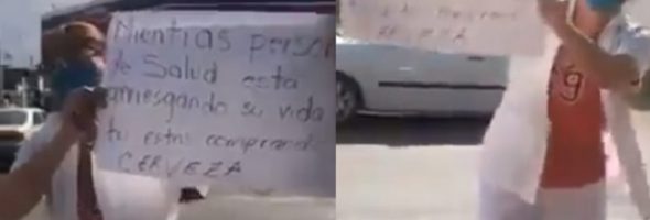 Enfermera rompe en llanto al ver una larga fila para comprar cerveza